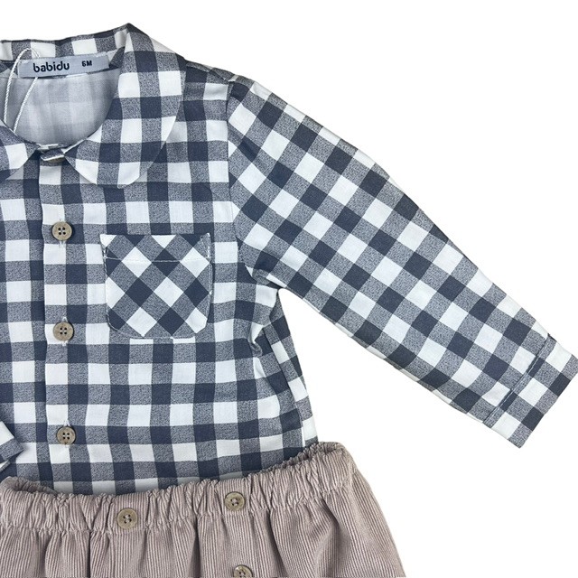 Camisa 100% algodón con estampado de cuadros en color gris oscuro.