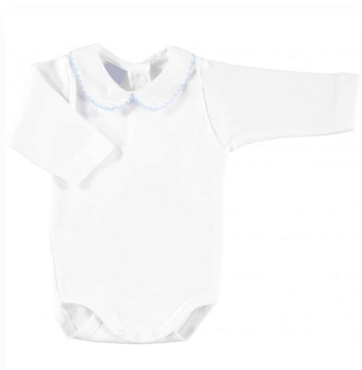 Body Unisex con cuello estilo bebé con tejido de piqué, apertura trasera mediante cierres automáticos.