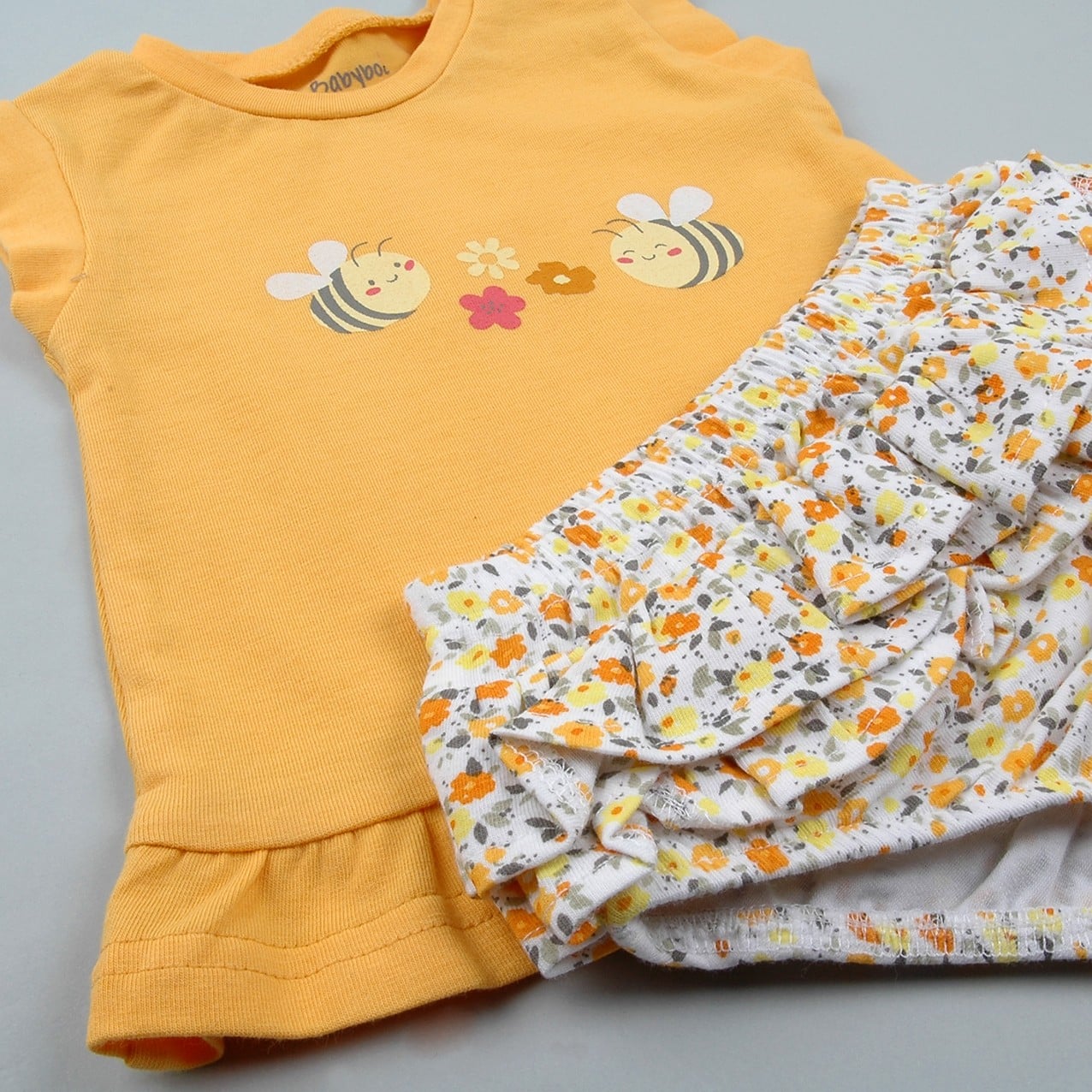 Camiseta de tirantes 100% algodón de color amarillo con estampado en el pecho abejas.