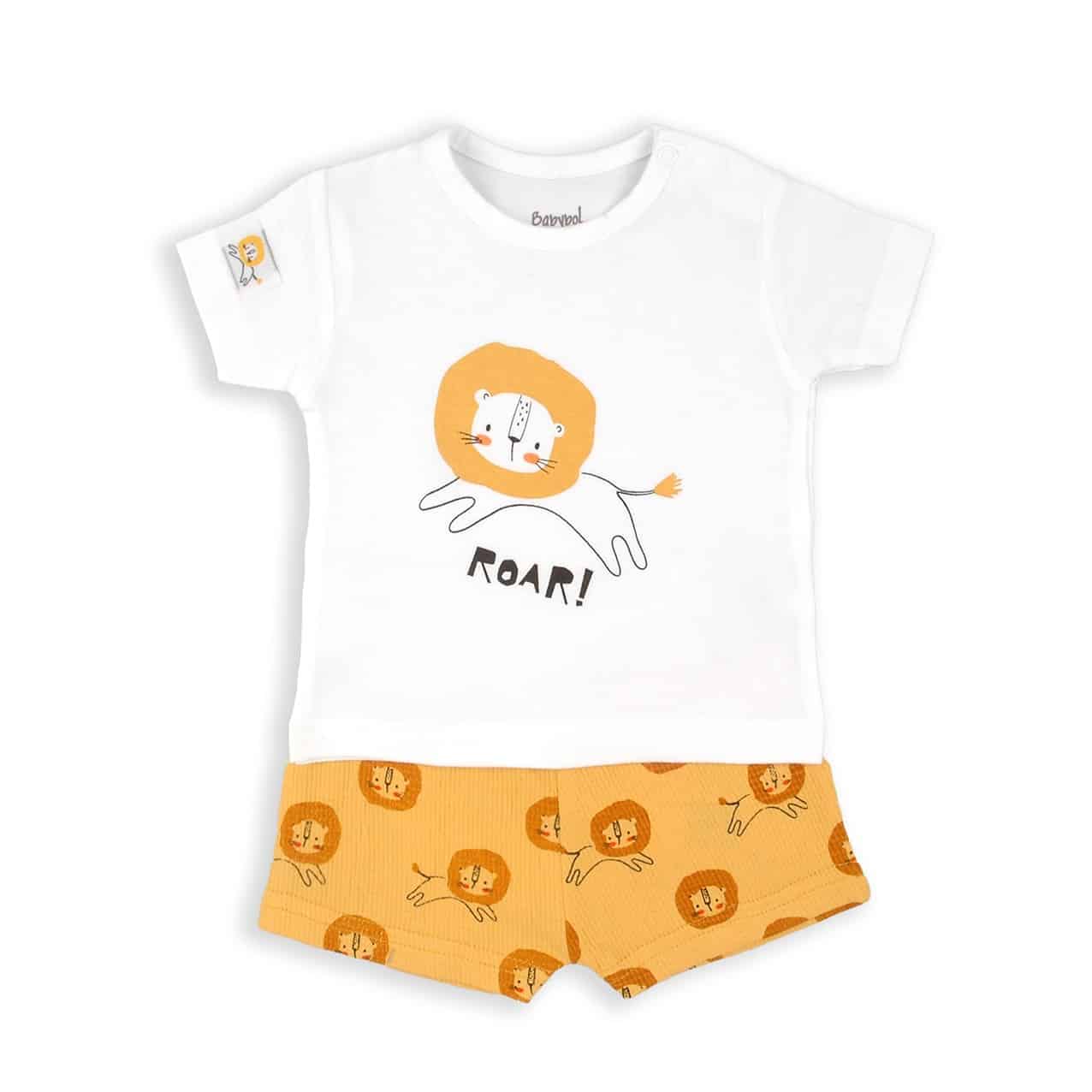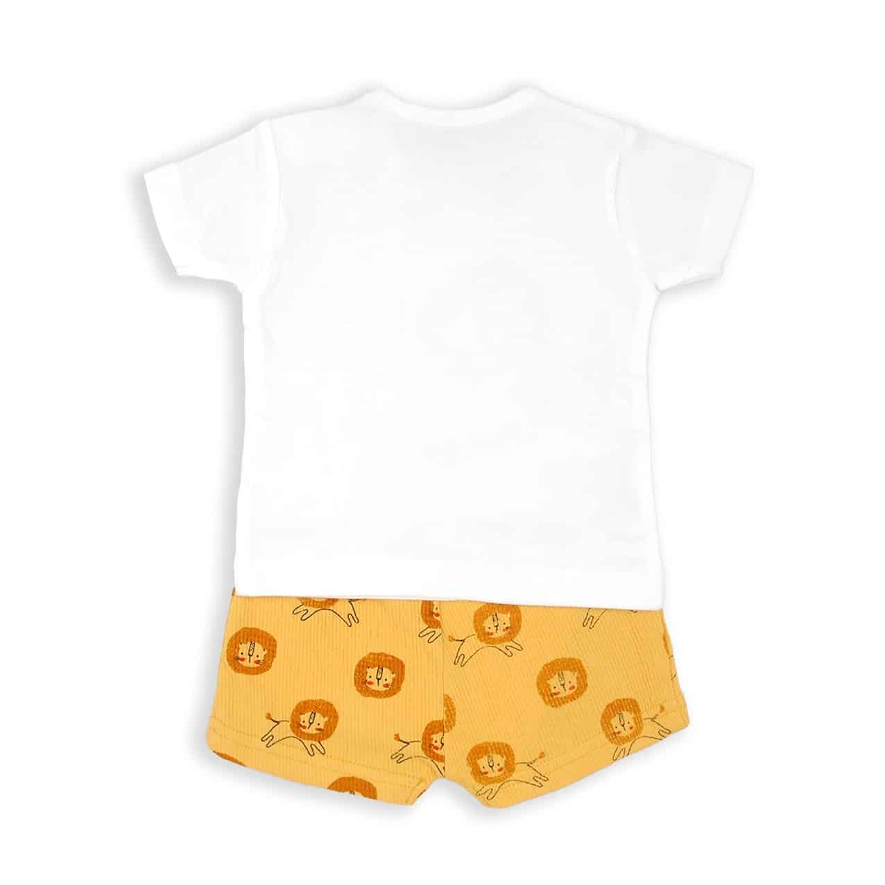 Pantalón de canalé 100% algodón de color mostaza con estampado de leones.