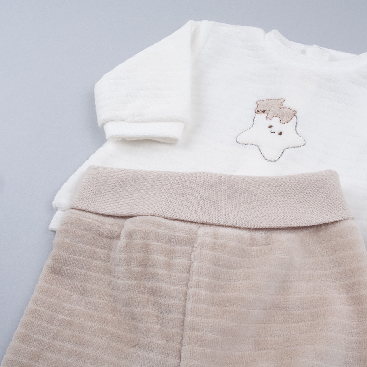 Sudadera con estampado en el pecho y apertura en hombro con corchete.