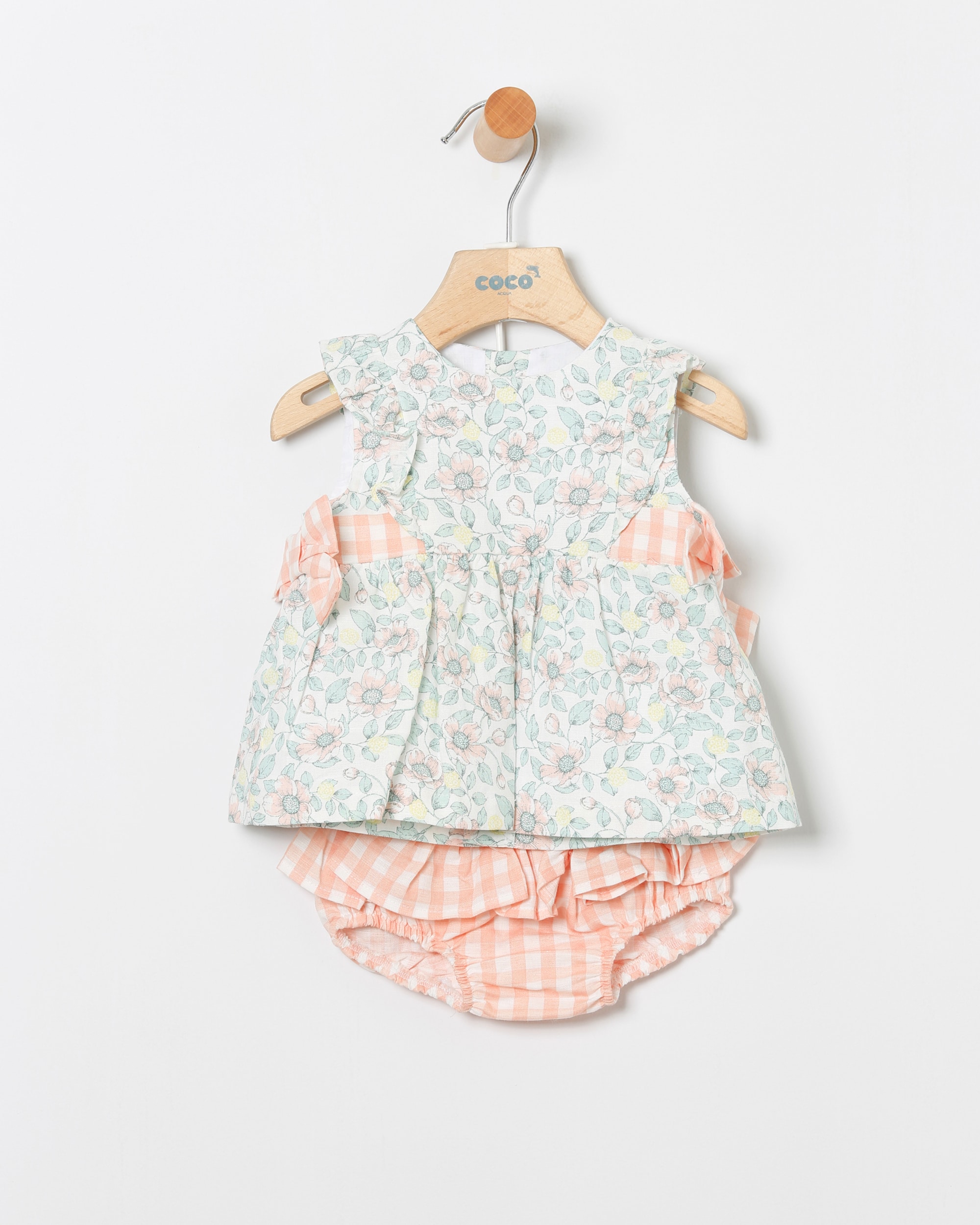 Jesusito desmangado con estampado de flores en color verde y naranja.