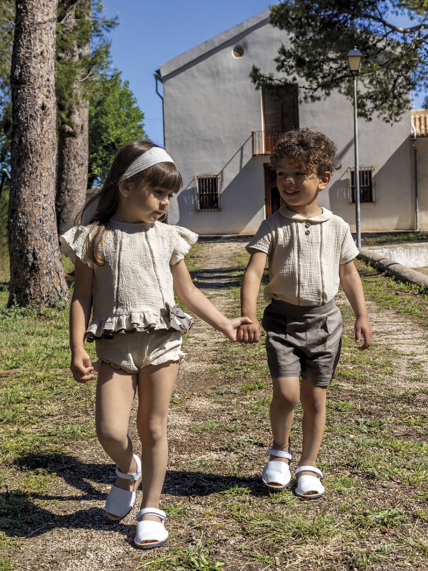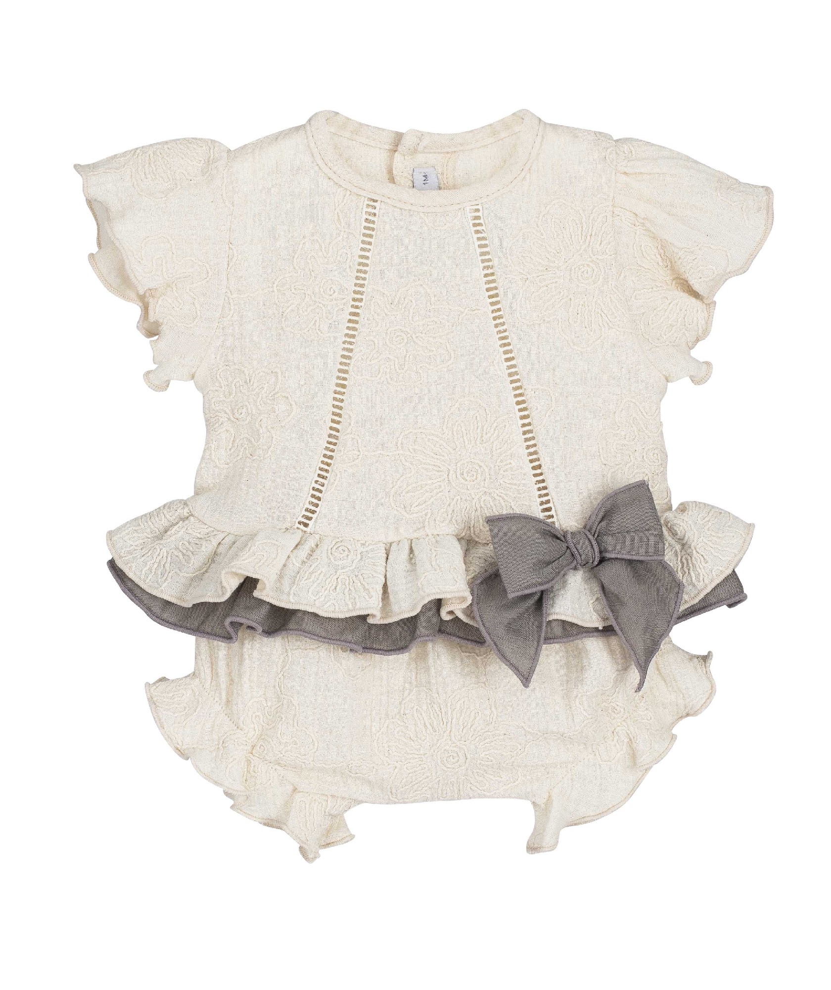 Jesusito 100% algodón de color lino con un delicado bordado de flores.
