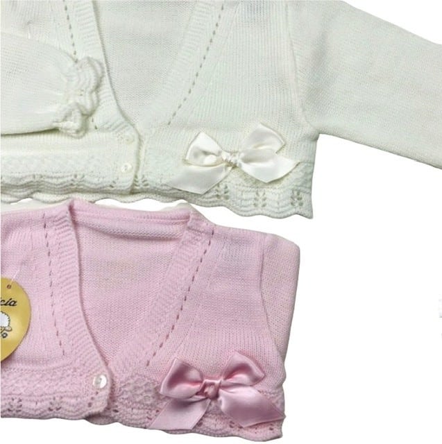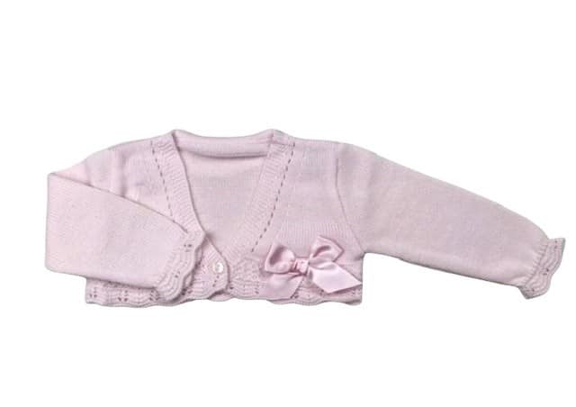 Bolero lanita (dralón) disponible en color beig y rosa bebé.