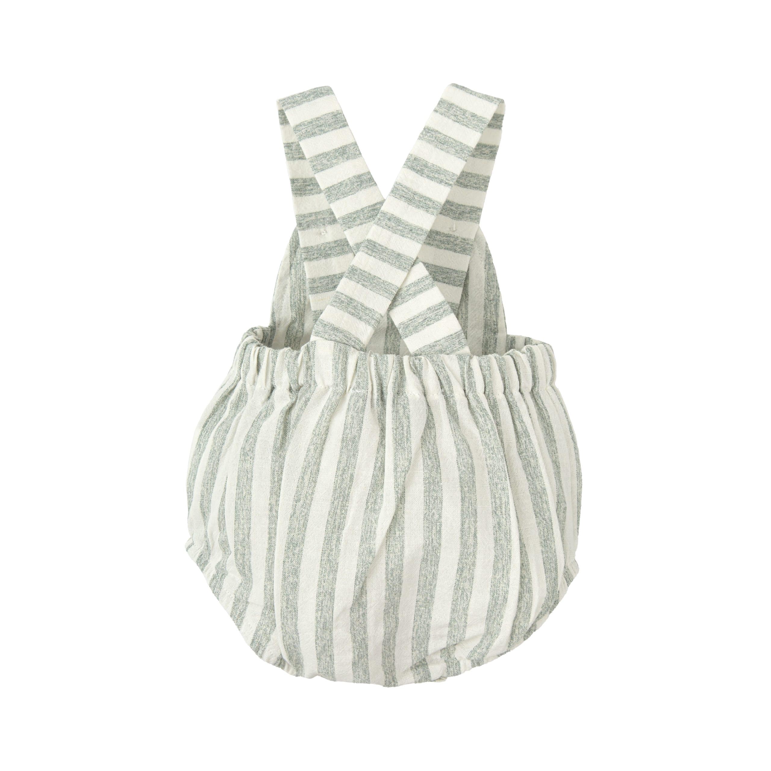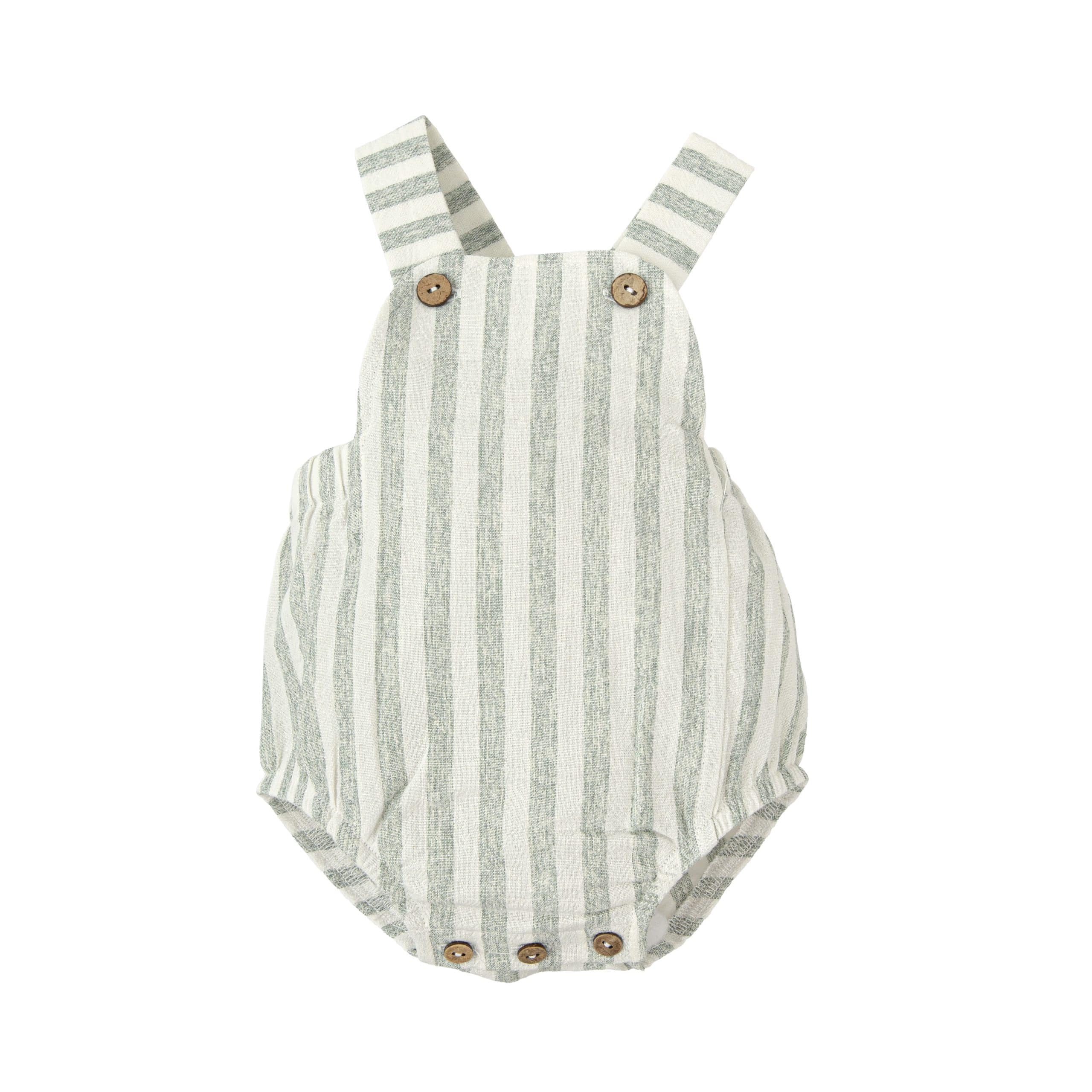 Peto de lino con estampado de rayas en color beige y verde.