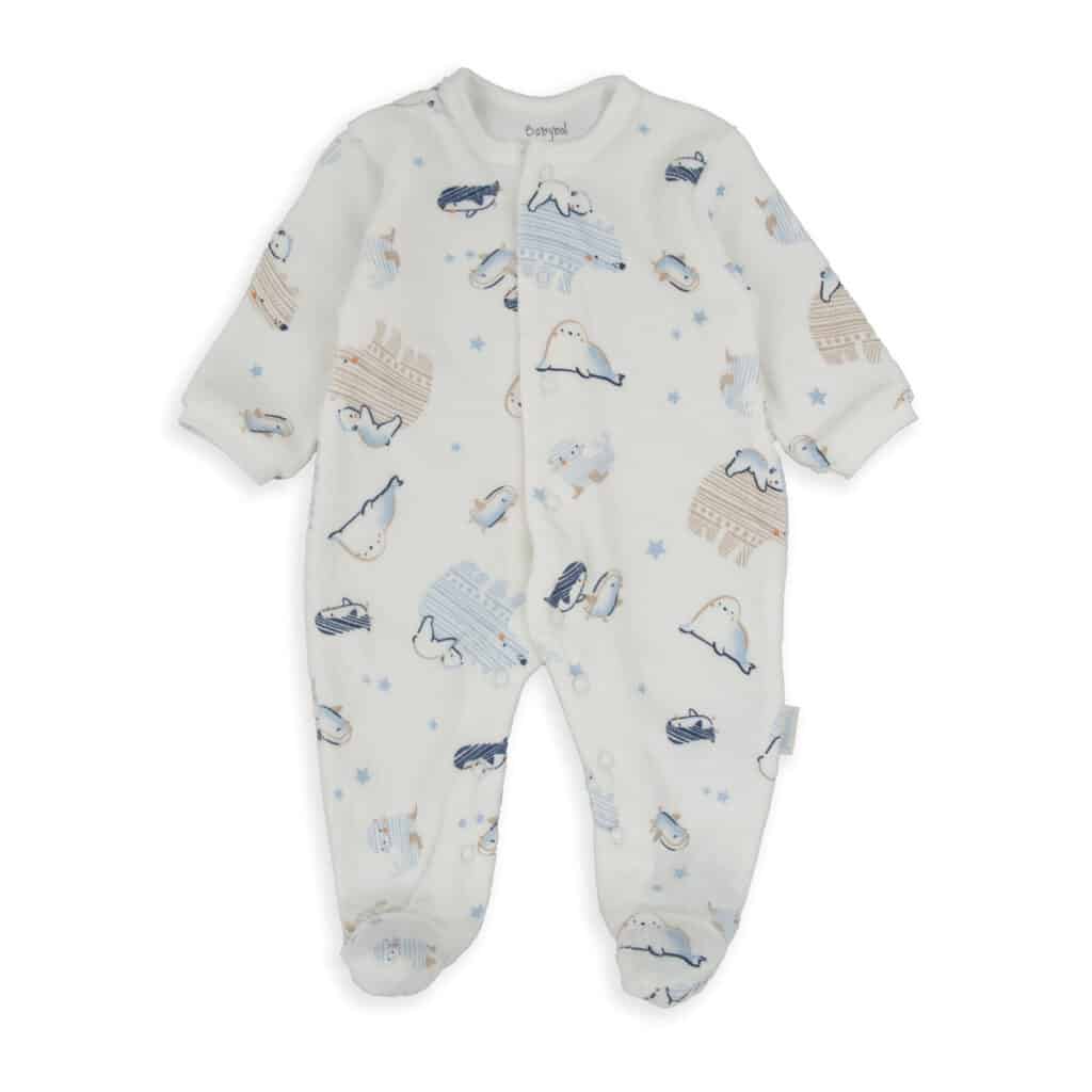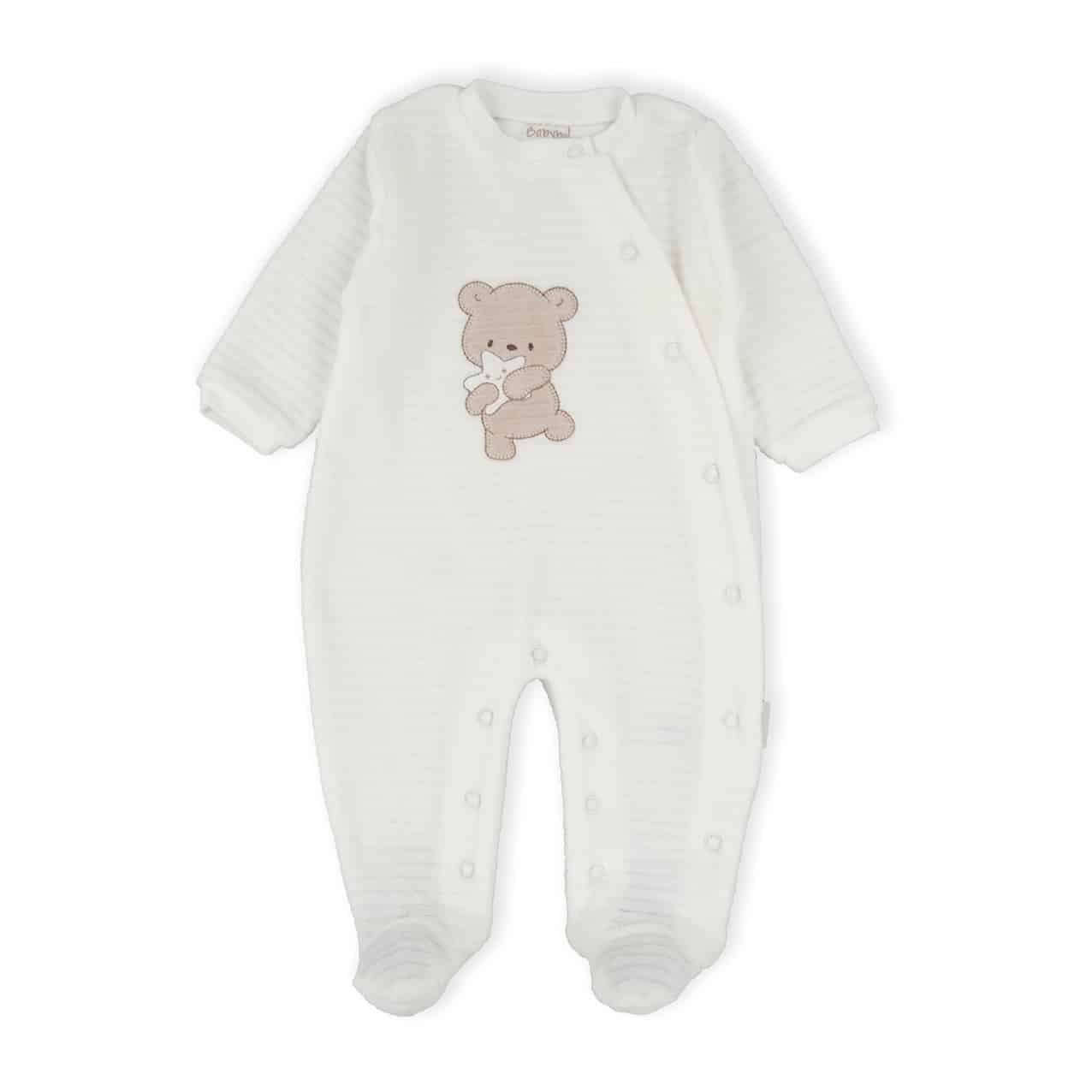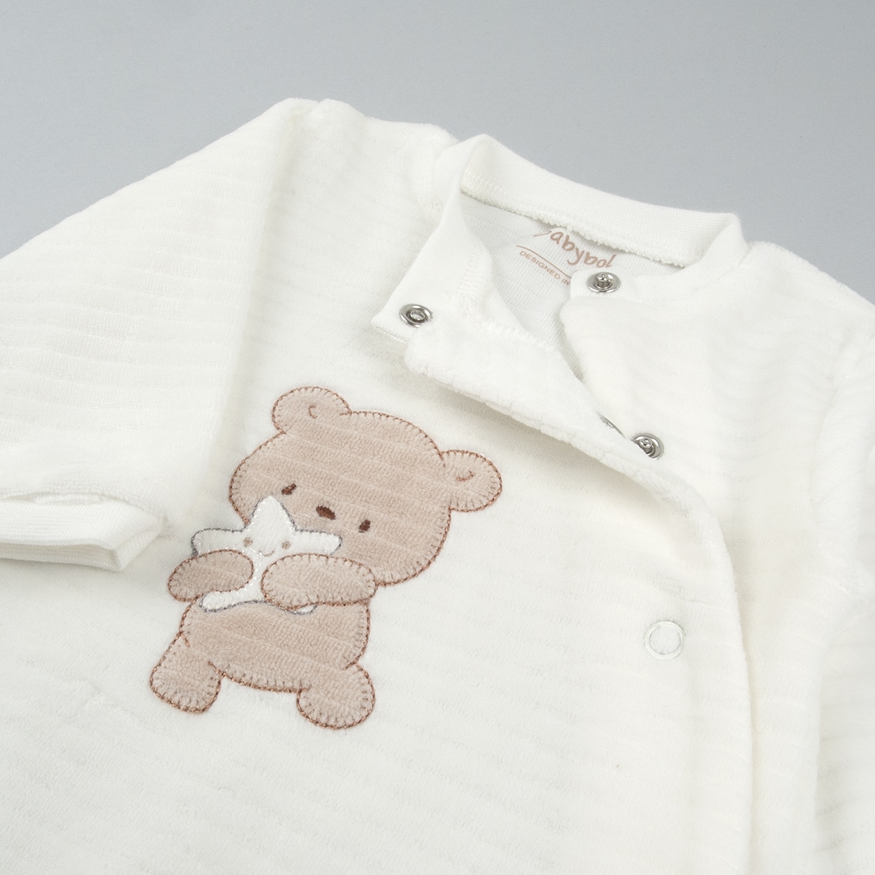 Pelele de terciopelo acanalado 100% algodón en color crudo con bordado osito marrón en el pecho.