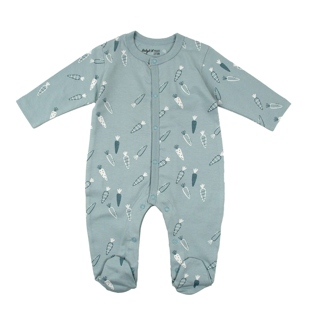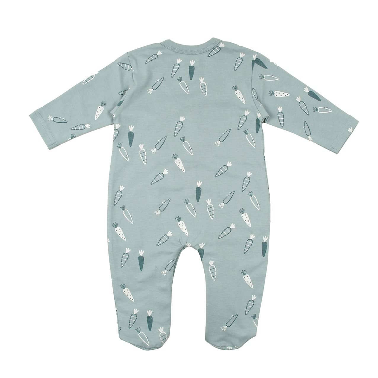 Pelele de color azul tiza con apertura completa en la parte delantera e inferior.