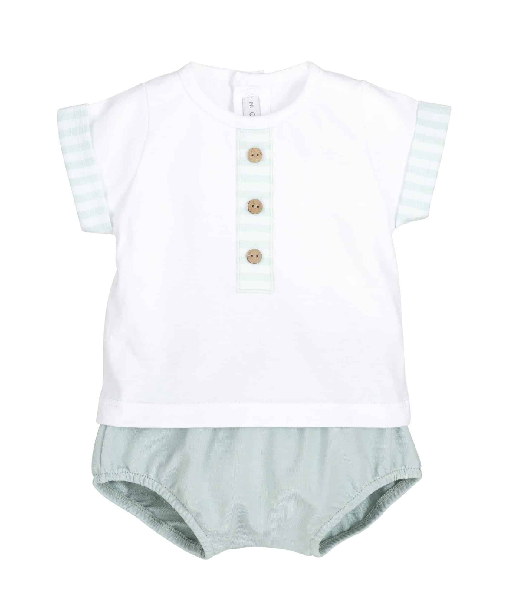 Camiseta de manga corta con detalle tejido estampado a rayas en pecho y mangas.