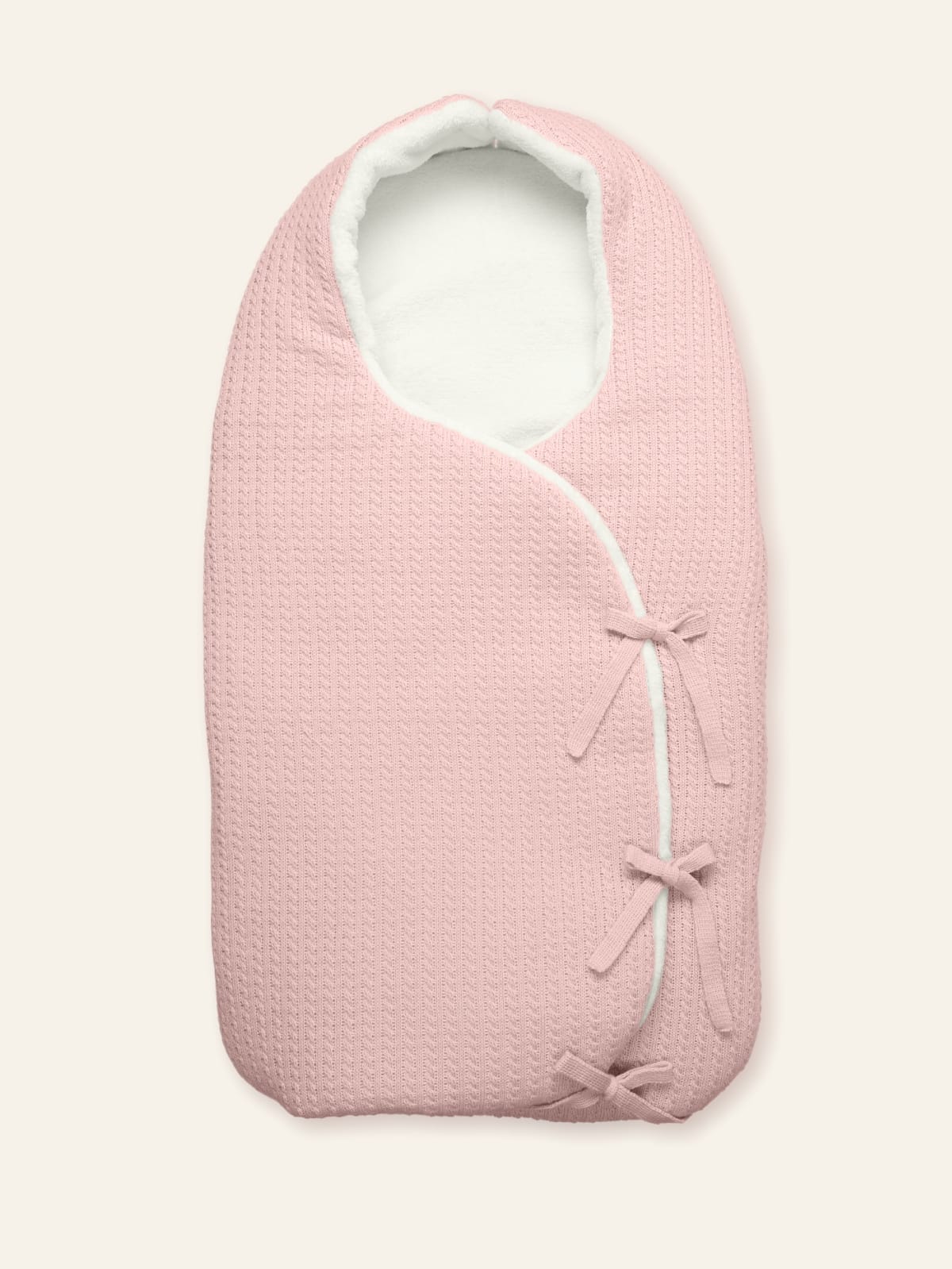 Apertura cruzada con lazada y capucha desmontable con botones.